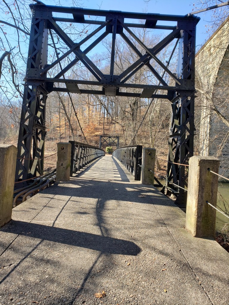 After minutes passed, I spotted something sensational, Swinging Footbridge in Brandywine Park.